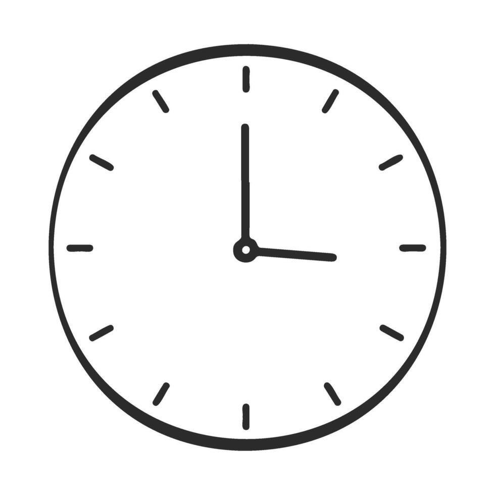 Minimalist analog clock showing three o'clock with simple design Pro Vector