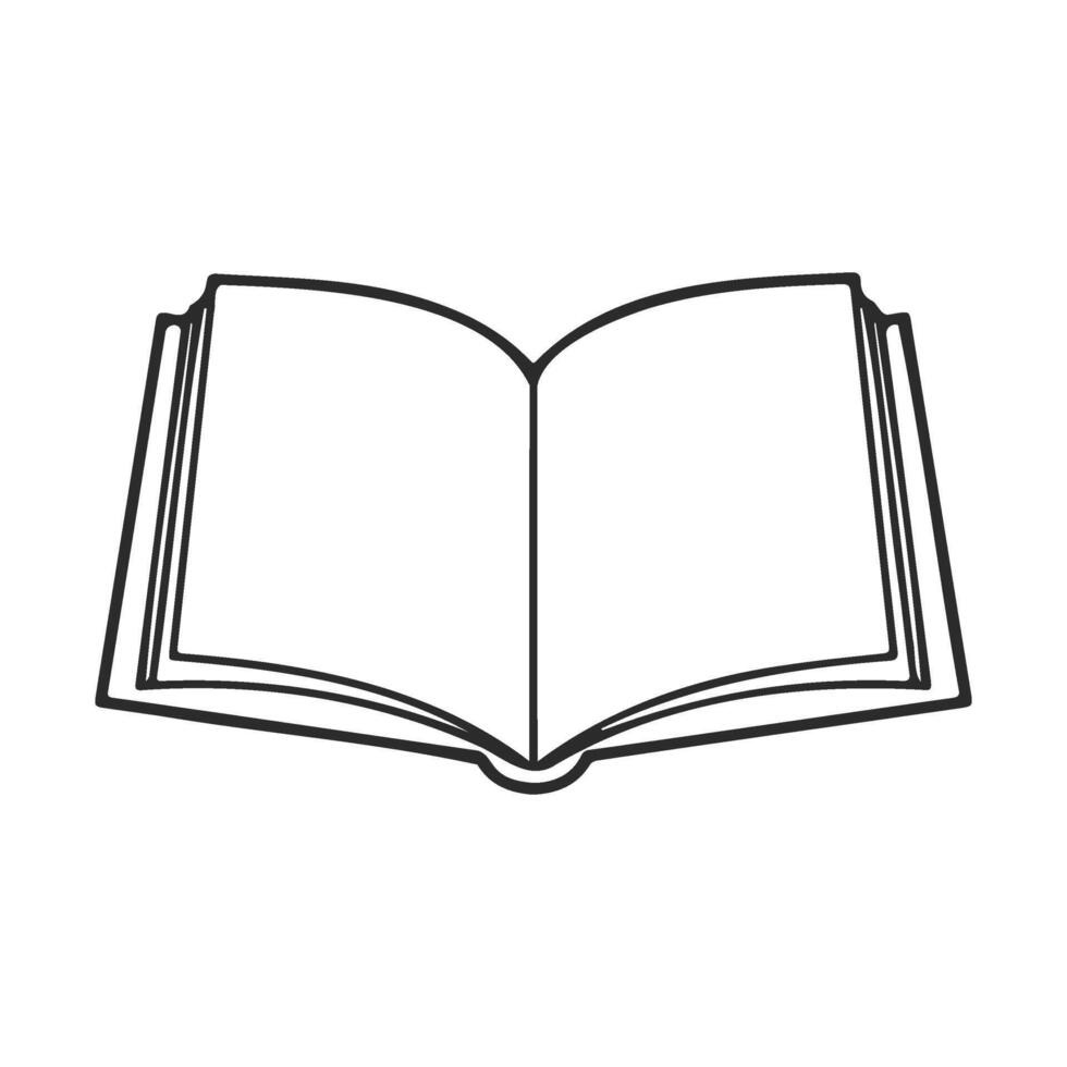 Simple outline of an open book with blank pages in black and white Pro Vector