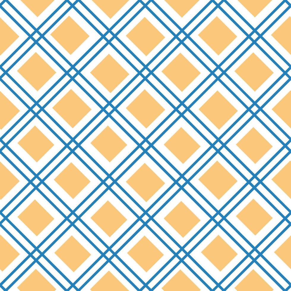 Seamless geometric pattern with yellow diamond shapes and blue intersecting lines on white background. Concept of modern design, symmetry and abstract decorative structure Pro Vector