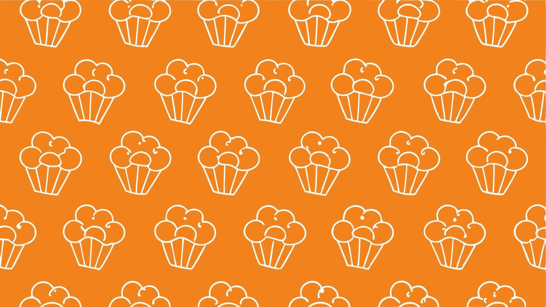 Seamless cupcake pattern on a vibrant orange background creates a cheerful and playful design for various applications Pro Vector
