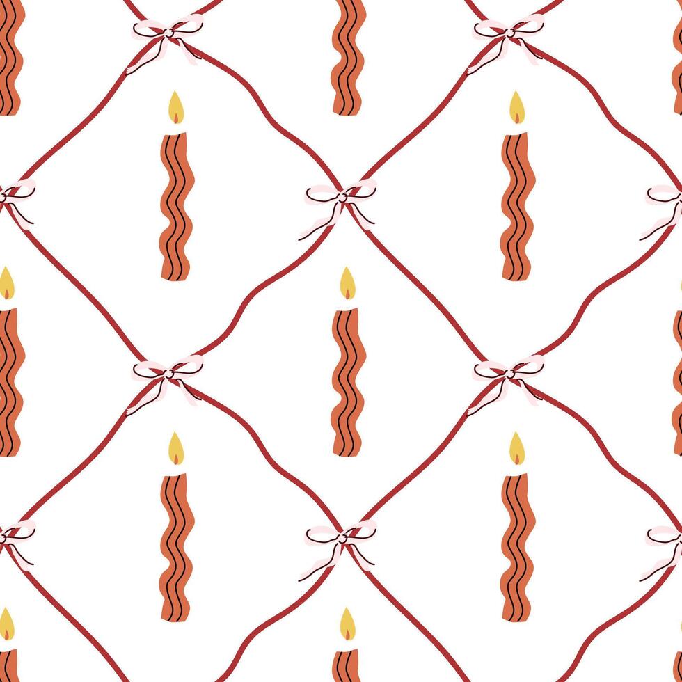 Abstract candle pattern with red ribbons on white background Pro Vector