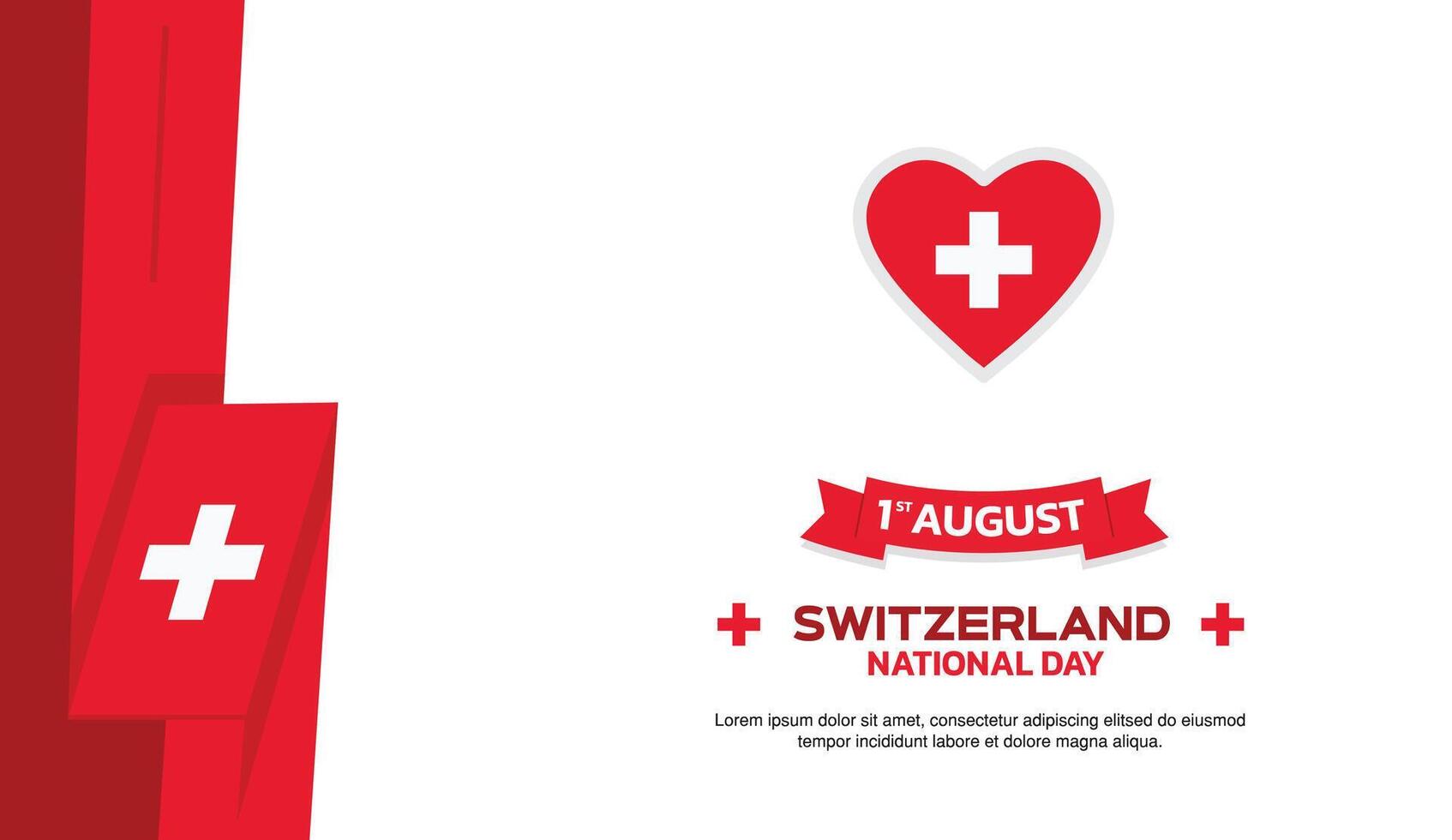 switzerland Independence Day Design, minimalist template of August 1st design elements with ribbon on the left side, swiss map and flag in poster and banner form Pro Vector