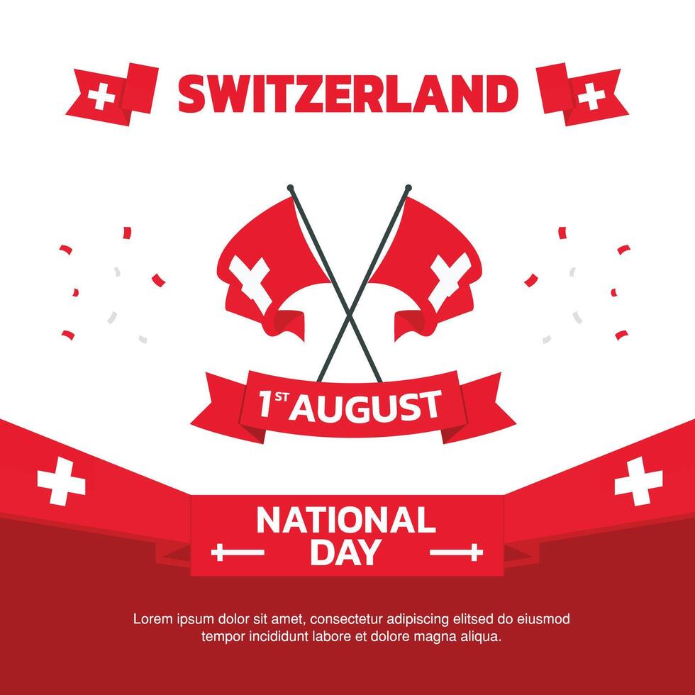 switzerland Independence Day design, August 1st design element box template with flag and at the bottom on green background, swiss map and flag Pro Vector