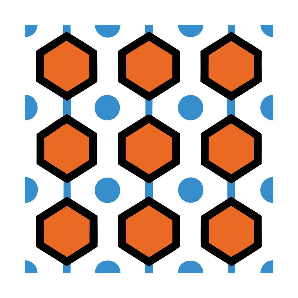 Orange hexagons blue circles geometric pattern on repeating graphic Pro Vector