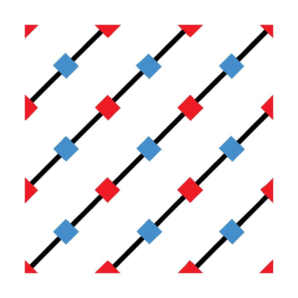 Repeating pattern diagonal lines with red triangles blue squares art Pro Vector