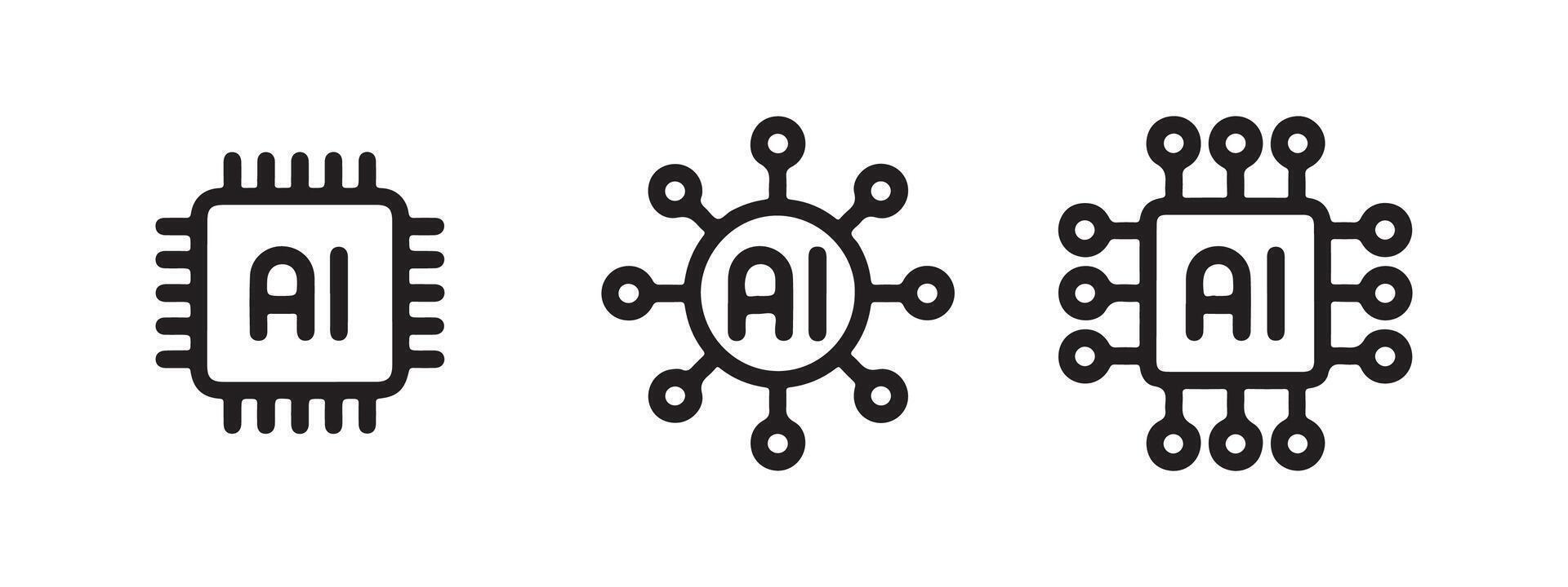 Artificial Intelligence Icons Representing Technological Advancement and Futuristic Concepts featuring different circuit shapes Pro Vector