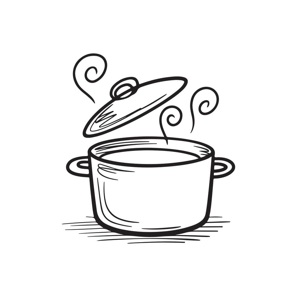 Sketch Illustration of a Steaming Cooking Pot with Lid Slightly Ajar on White Background Graphic Design Element Pro Vector