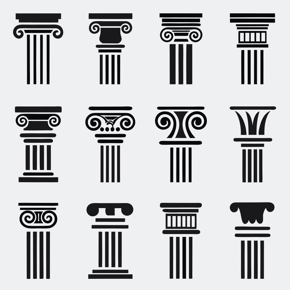 Collection of twelve classical column styles isolated on white background Pro Vector