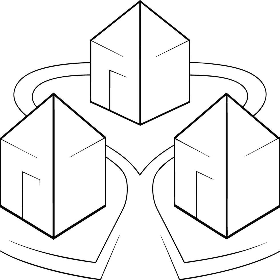 Three isometric houses arranged in a circular pattern isolated on white background Pro Vector