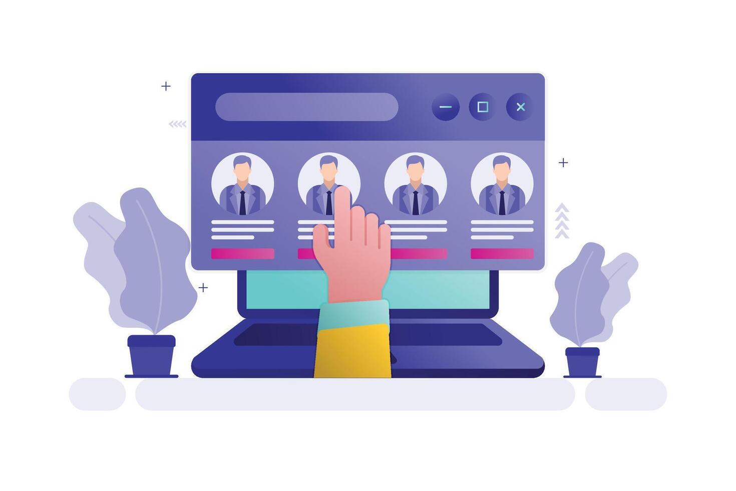 Illustration of Online Profile Selection on Computer Screen with User Avatars Pro Vector
