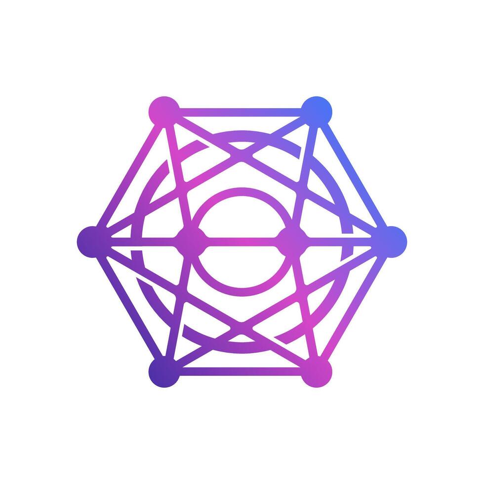 Abstract Blockchain Symbol with Connected Dots and Polygon. Futuristic Network Geometry Logo Design. Pro Vector