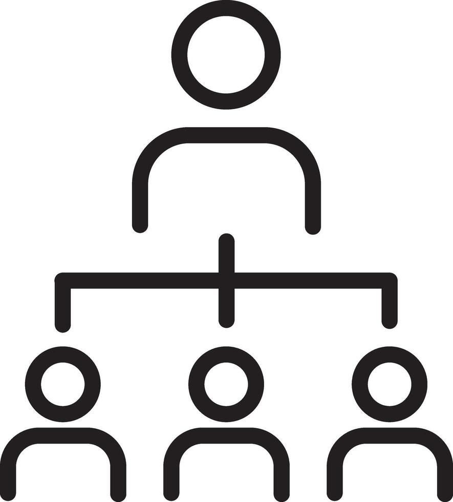 Organizational chart icon showing leader connected to three team members, representing hierarchy, teamwork, and management structure in business environment vector
