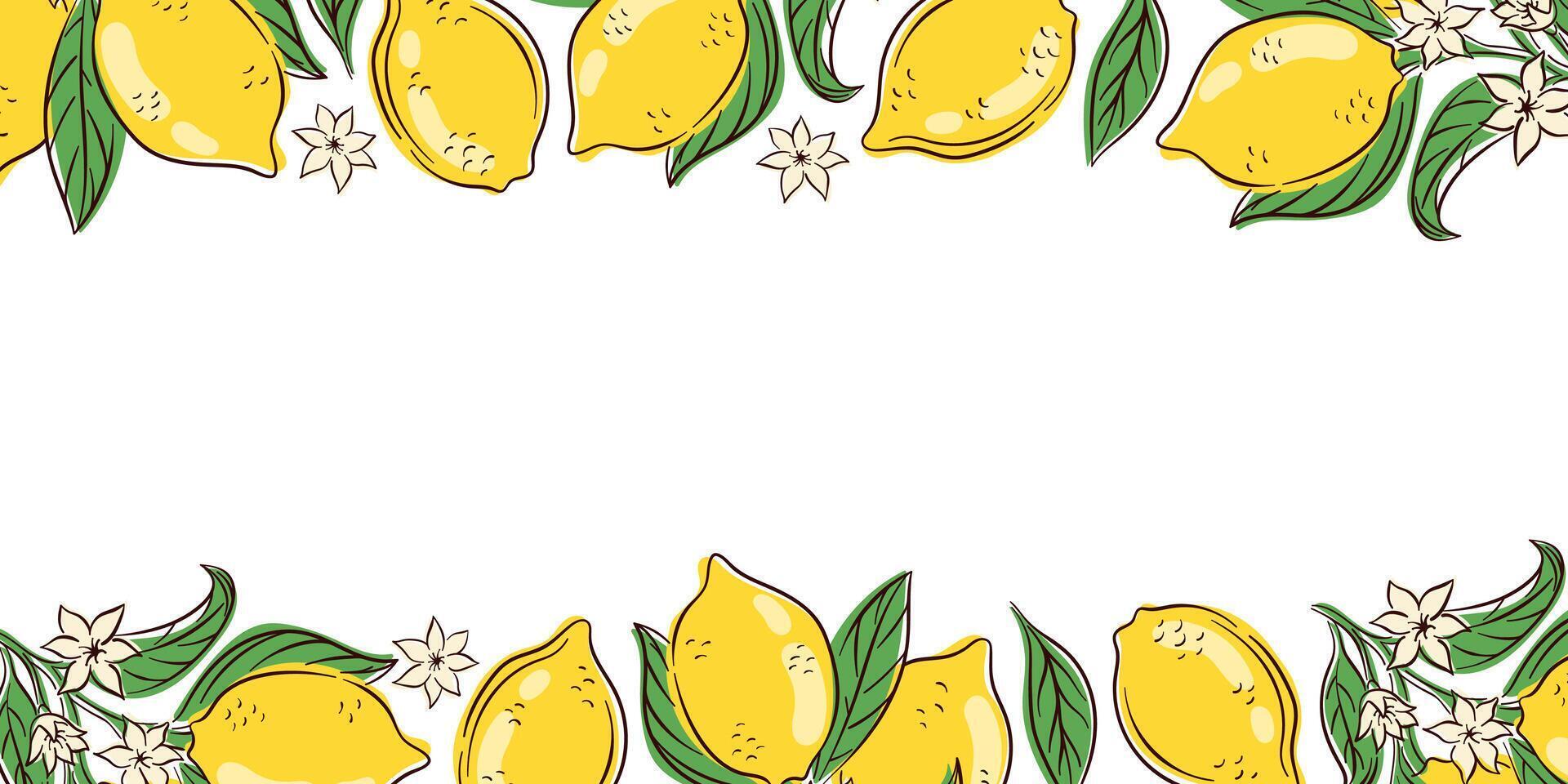 Branch frame with lemon, leaf and blossom flower in flat style on a white background. Design for card, website banner, invitation. Pro Vector