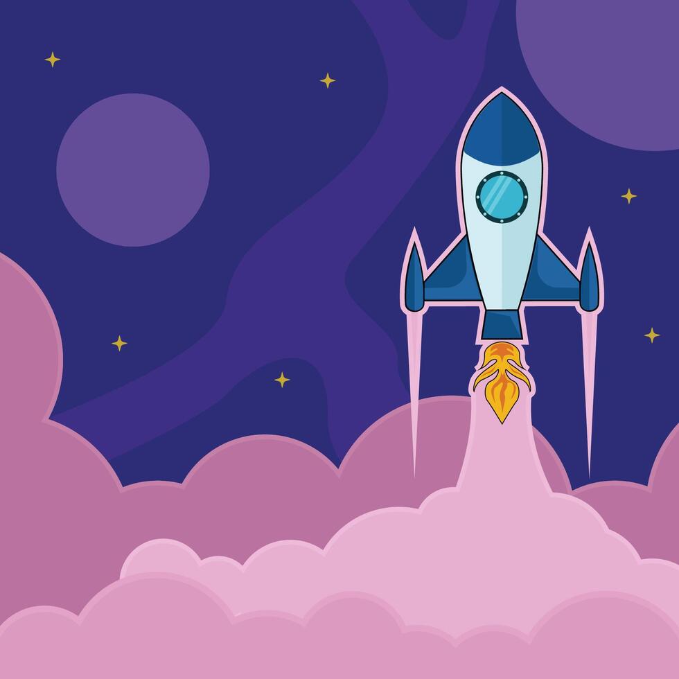 rocket launch into space illustration template graphic design . outer space exploration with stars and cloud sky for astronomy and science technology idea concept with backgrounds Pro Vector