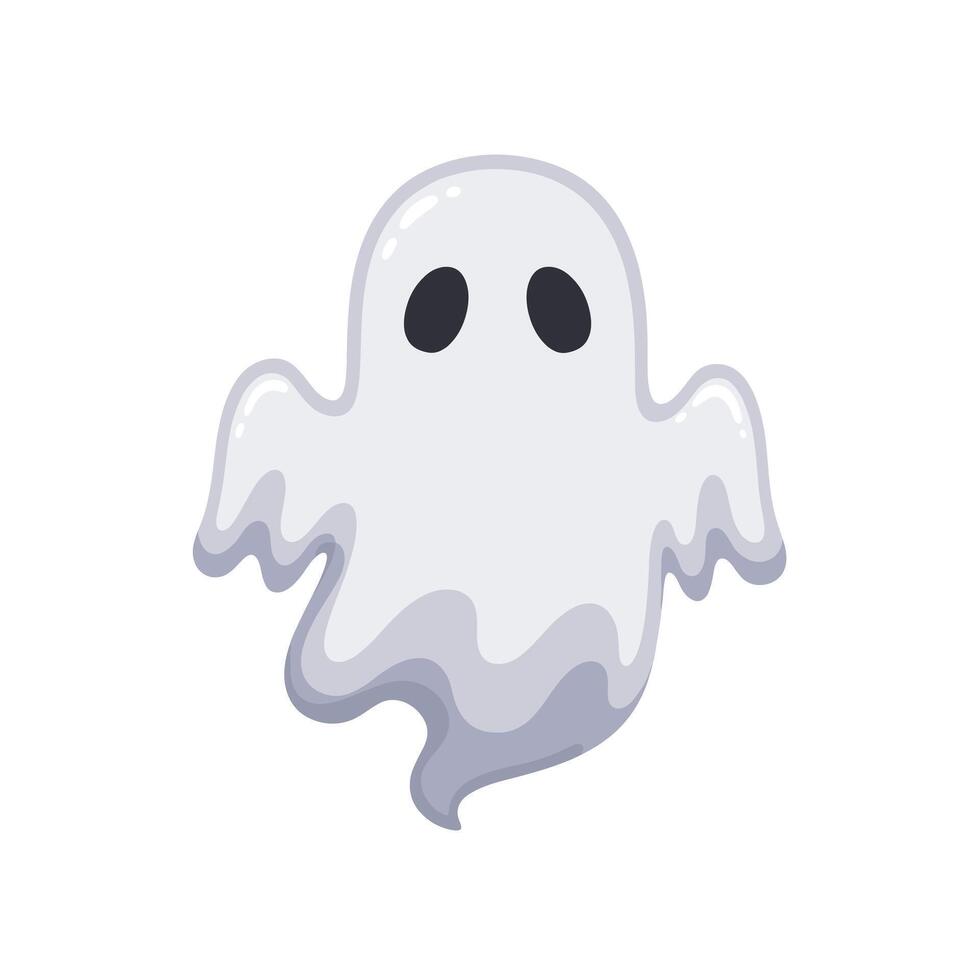 soft edges and big dark eyes. The ghost appears to be floating, with a wavy bottom and a friendly Halloween vibe. vector