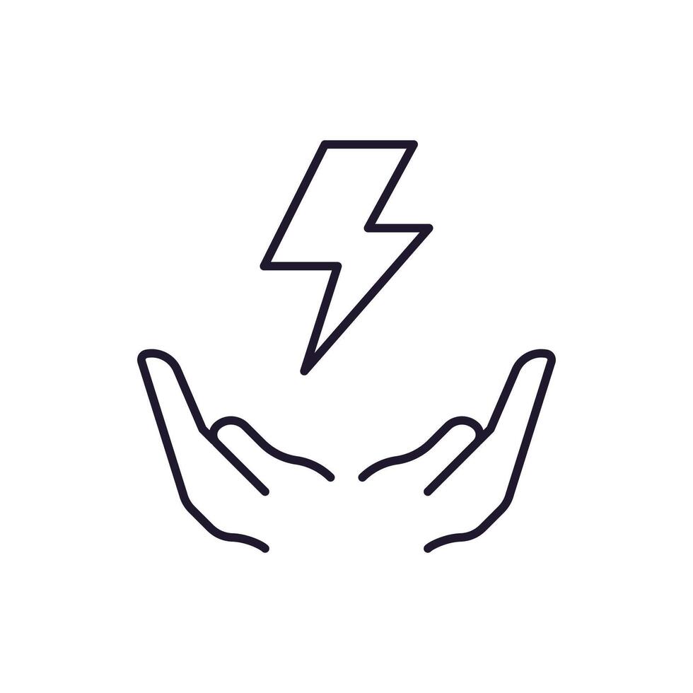Lightning above Open Hands Linear Symbol for Graphic Design, Web Sites, Cards, Books, Articles Pro Vector