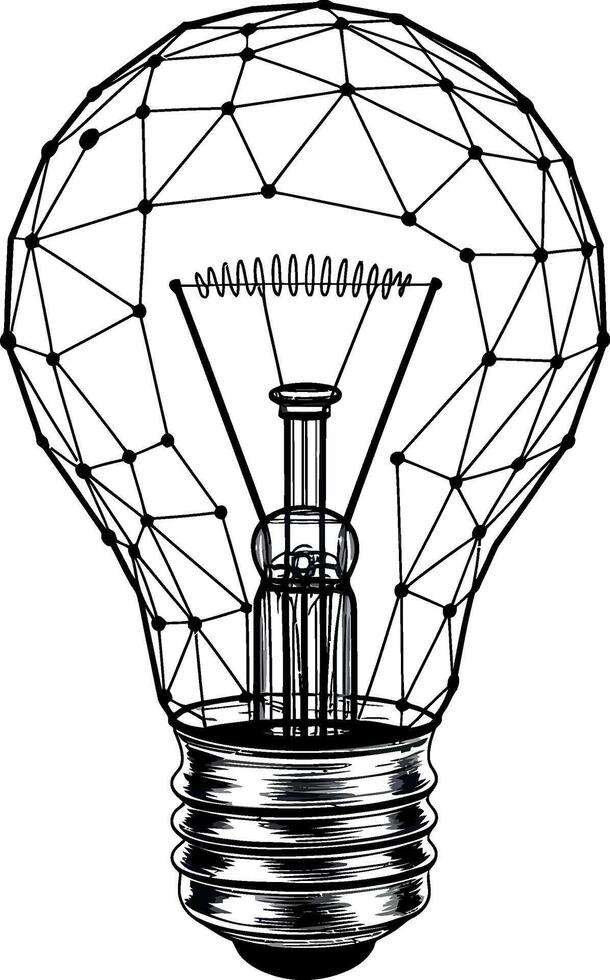 Black and white wireframe light bulb with internal filament and screw base idea innovation Pro Vector