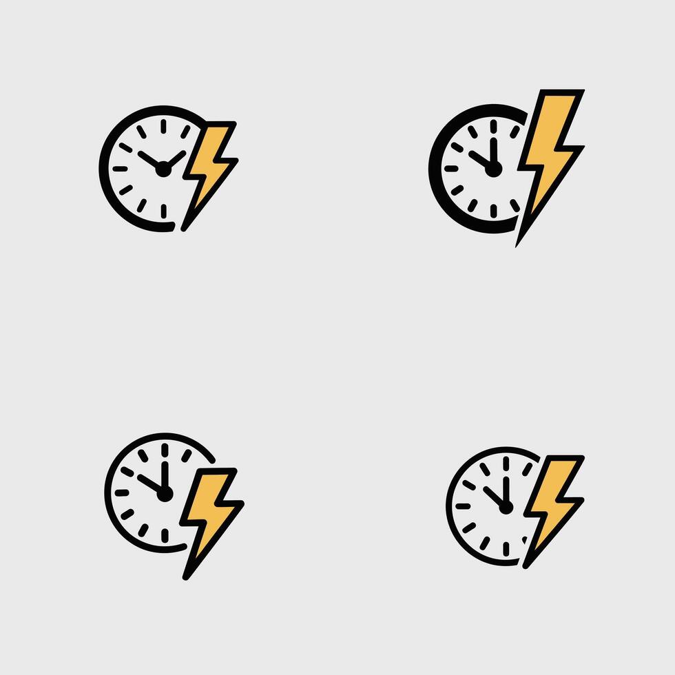 Four Simple Icons Depicting a Clock and Lightning Bolt in Yellow and Black on a Light Gray Background Each Icon Shows a Black Clock with White vector