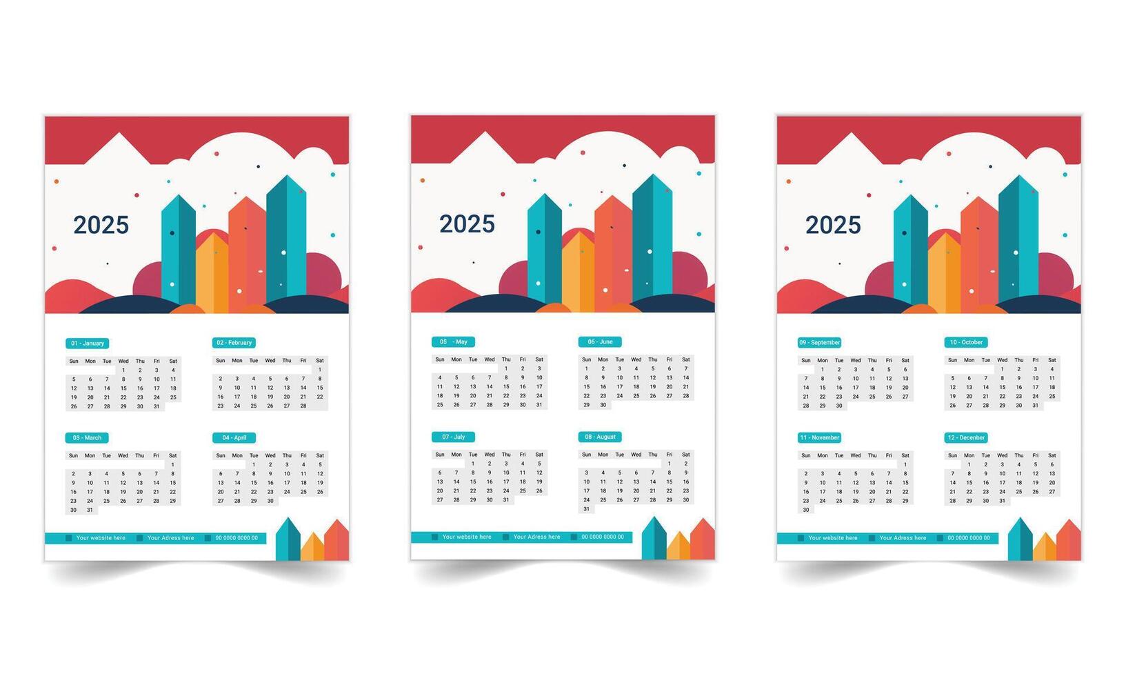Wall Calendar Template Design , Printable, Modern, and Minimal Layout for Office, Home, or Business Use , Editable design Calendar for 2025 with Clean Grid and Date Format Pro Vector