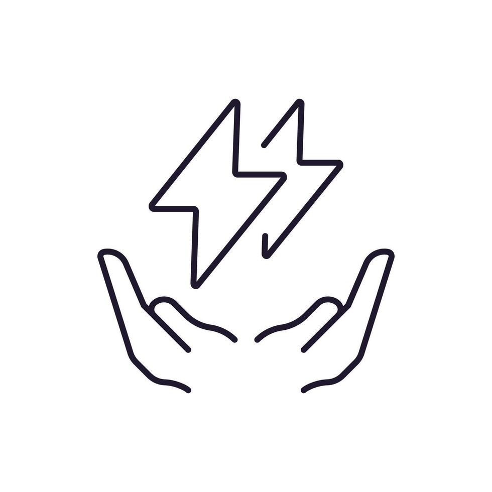 Lightning above Open Hands Isolated Line Icon for Graphic Design, Web Sites, Cards, Books, Articles Pro Vector