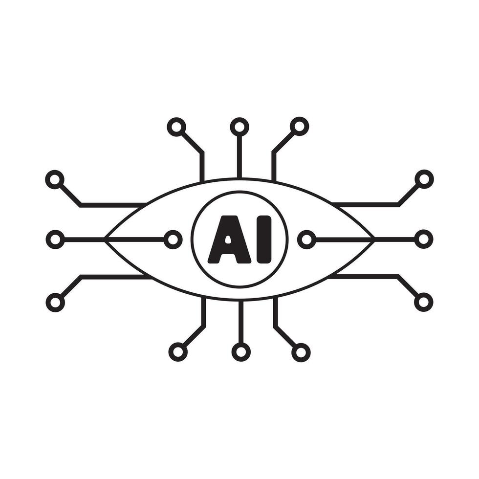 Illustration showcasing a stylized representation of artificial intelligence through minimalistic design, featuring an eye pattern integrated with circuits and the acronym AI within the artwork. Pro Vector