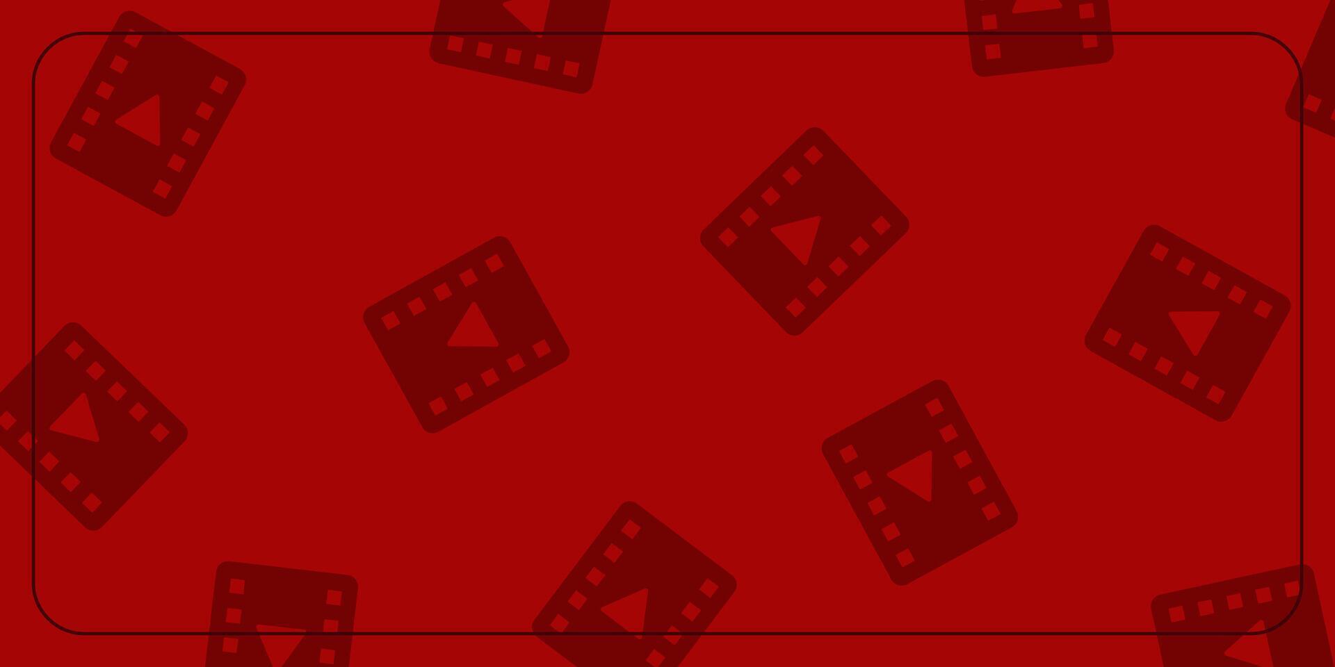 Patterned red background with play or movie icon. Pro Vector