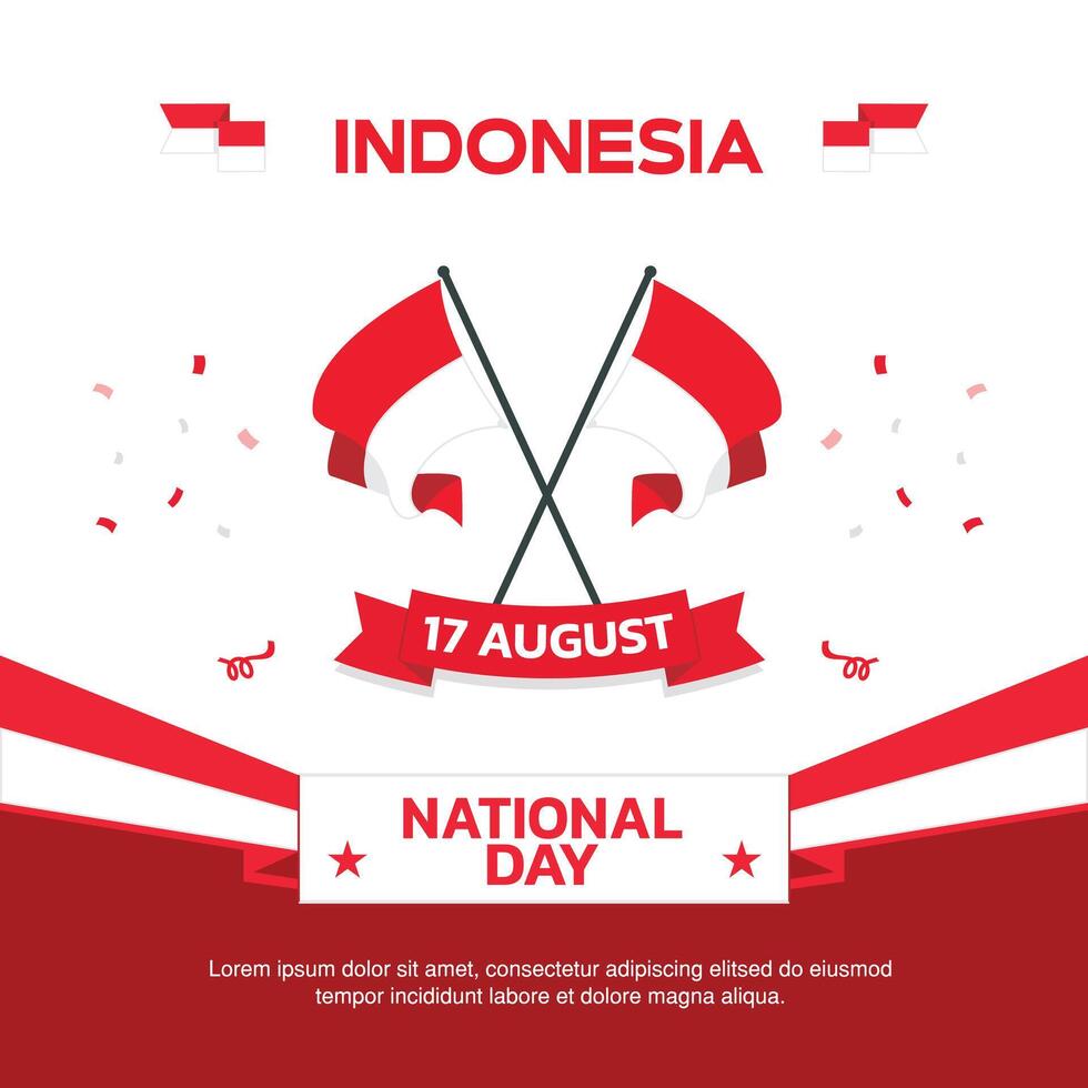indonesia Independence Day design, August 17th design element box template with flag and at the bottom on green background, indonesia map and flag Pro Vector