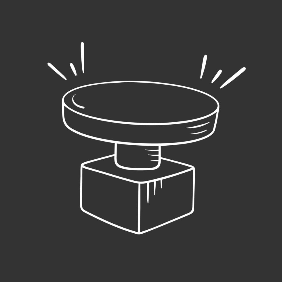 Button quiz in doodle style, hand drawn sketch. Press symbol icon in cartoon style, vector illuistration. Isolated element on black background for print and design. Push button for answer and bell Pro Vector