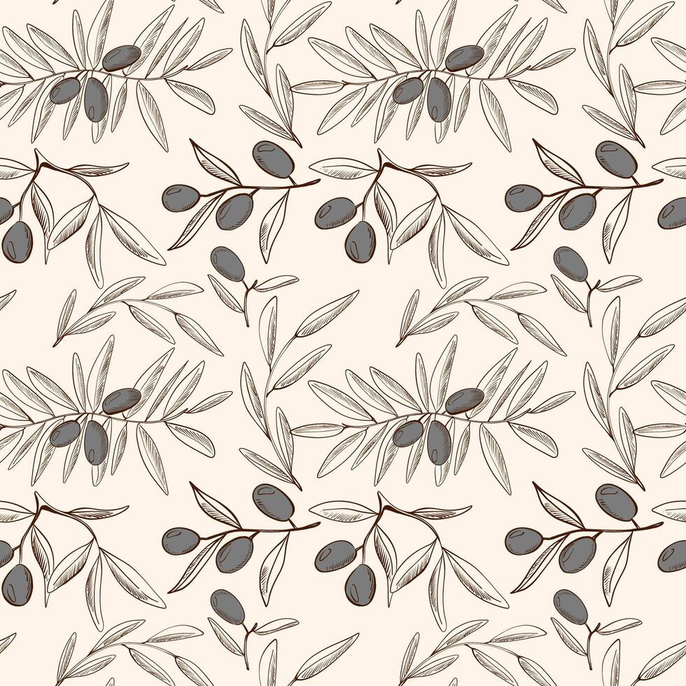 Olive branches with ripe olives pattern on a light background for home decor and design projects Pro Vector