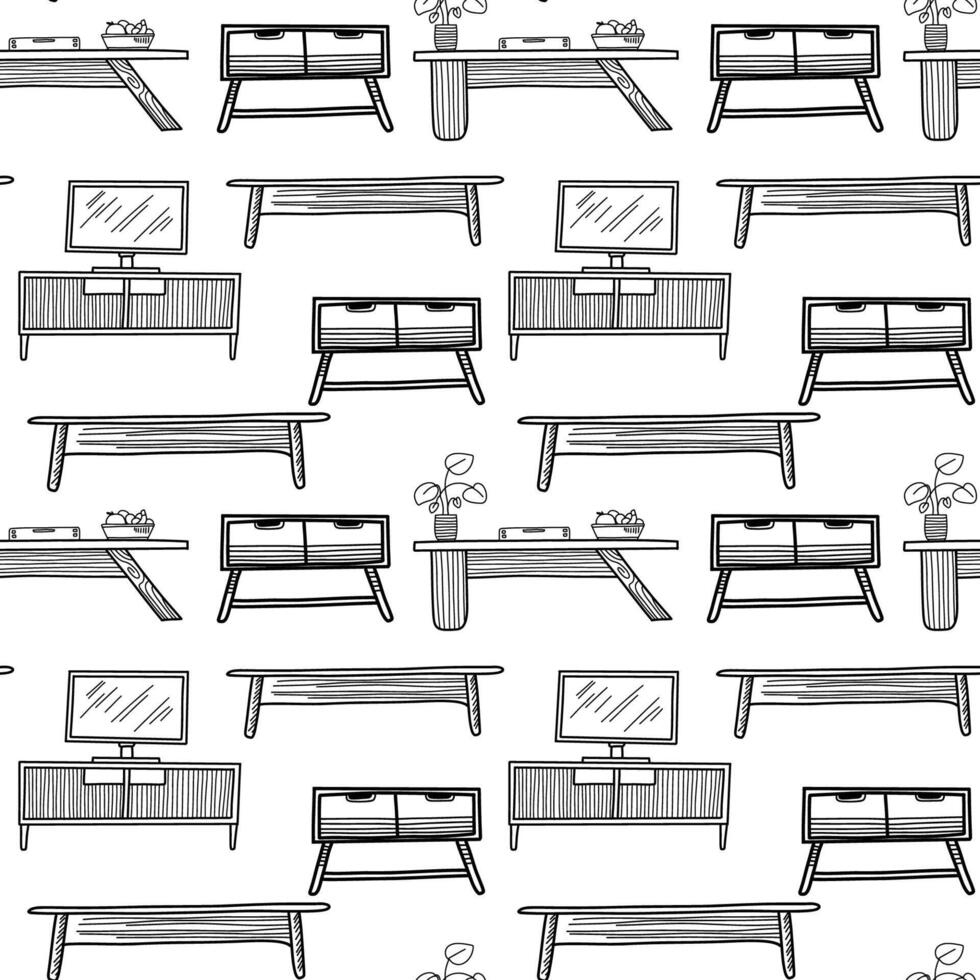 Stylish drawing of various furniture pieces arranged in a repeating pattern on a light background Pro Vector