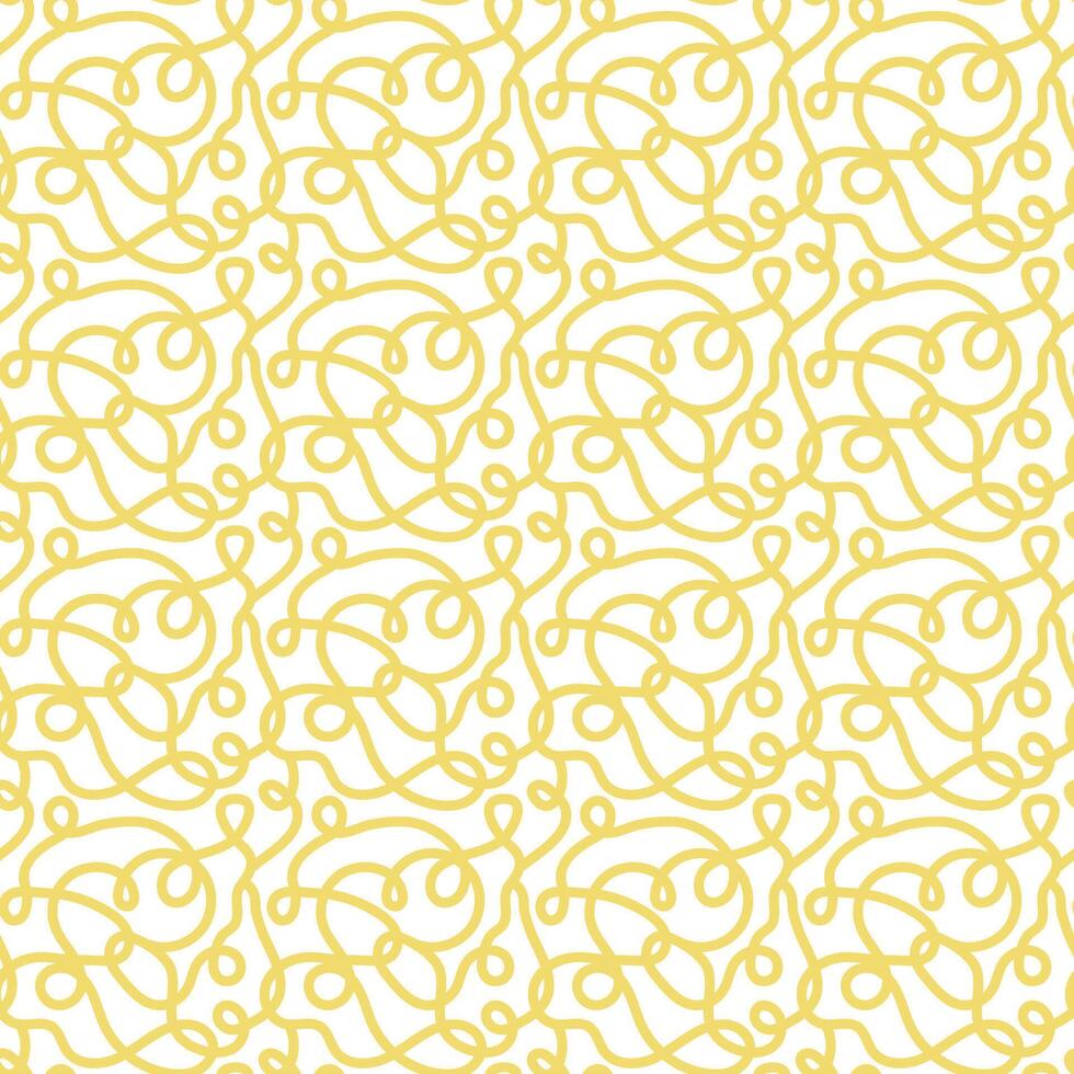 Yellow abstract noodles seamless pattern. Winding lines and loops on a white background Pro Vector