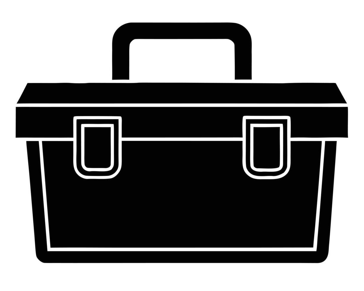 Sturdy Black Tool Box with Handle, Classic Design for DIY Projects and Repairs, Simple Silhouette, Isolated on White Background vector