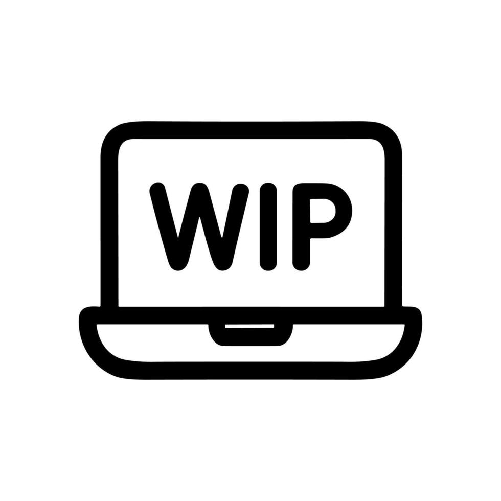 Simple Outline Laptop with Work In Progress Text Icon Design Pro Vector