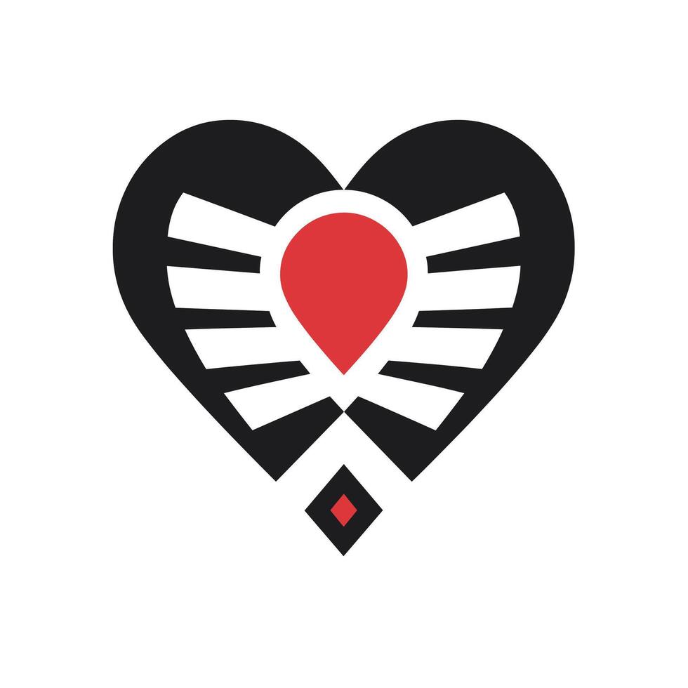 Stylized heart design with a red element and dynamic patterns representing love and connection vector