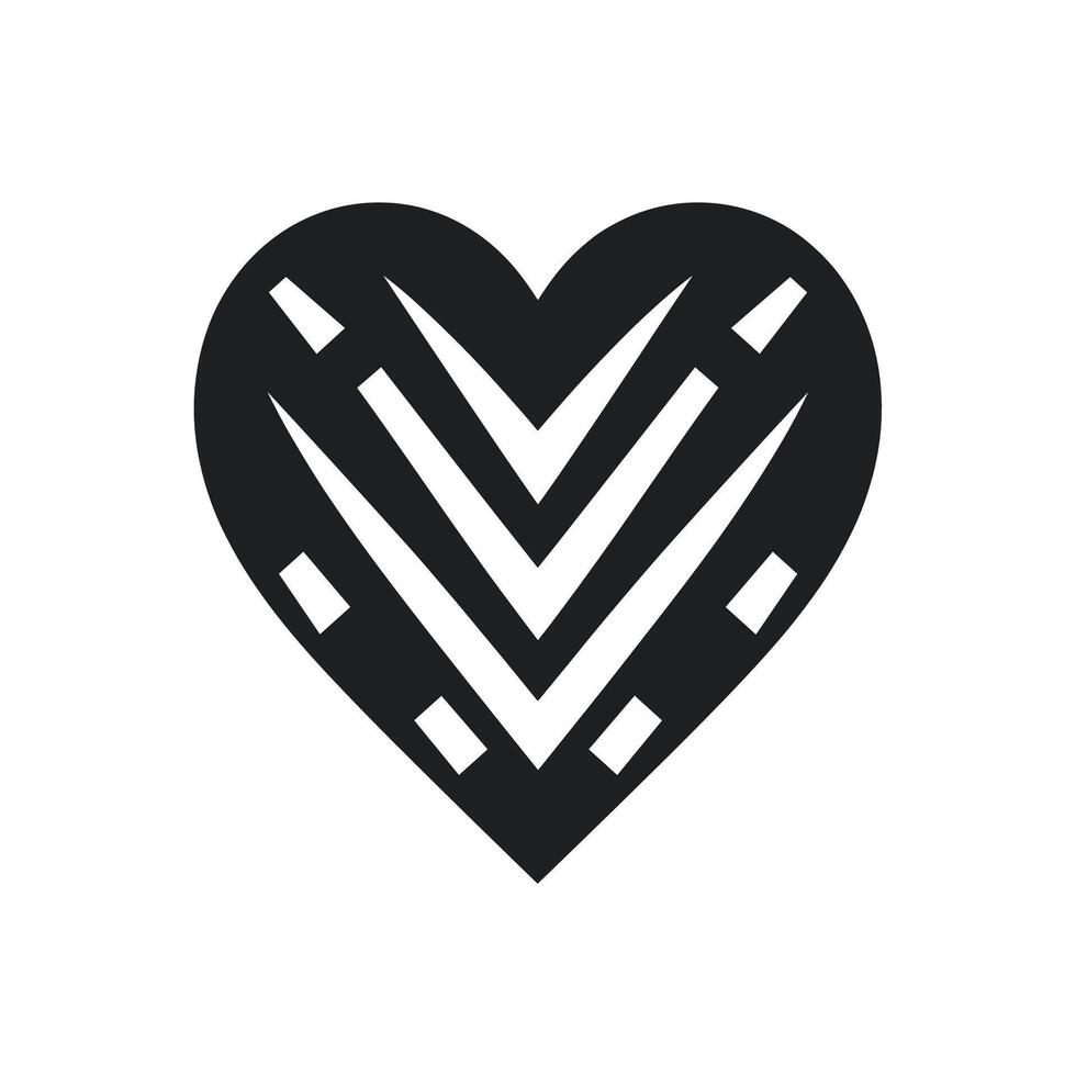 Heart design featuring intricate geometric patterns and bold lines in black and white vector