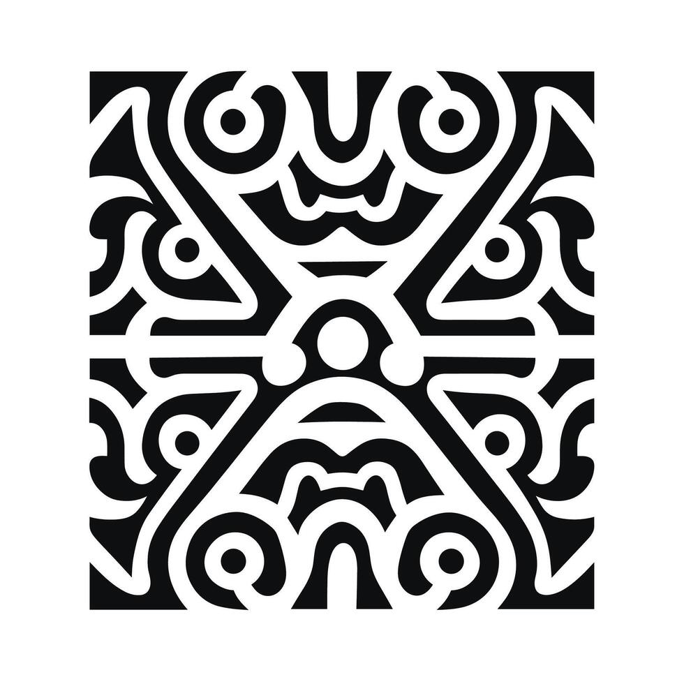 Intricate black and white tribal design with geometric patterns in abstract style vector
