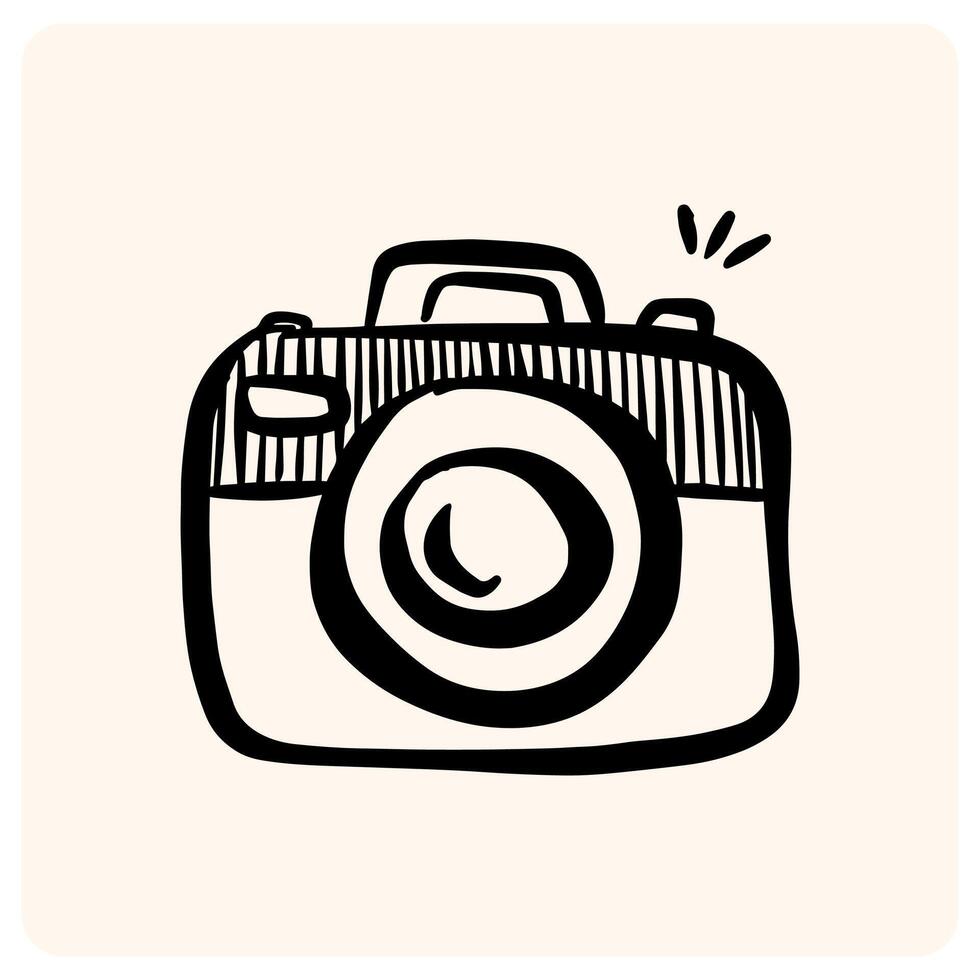 Hand-Drawn Retro Camera Icon with Flash Lines with background cream vector