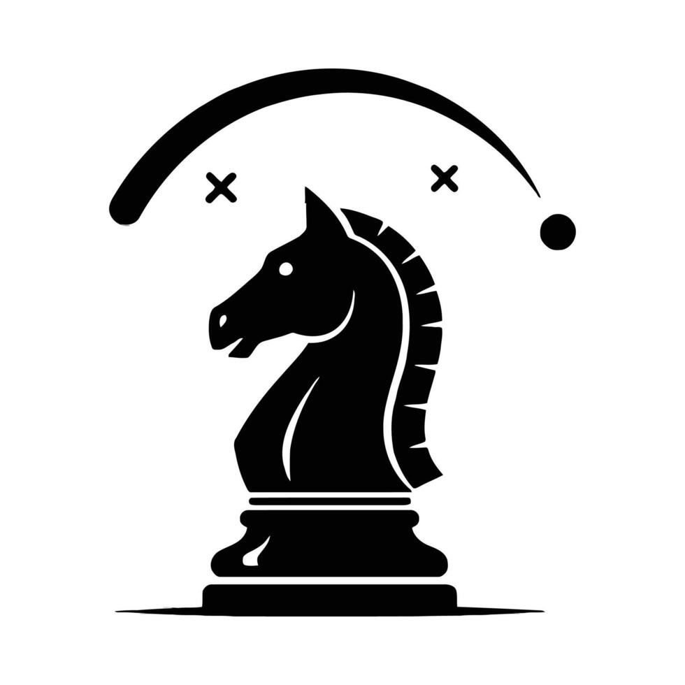 Black chess knight with abstract elements horse white Free Vector