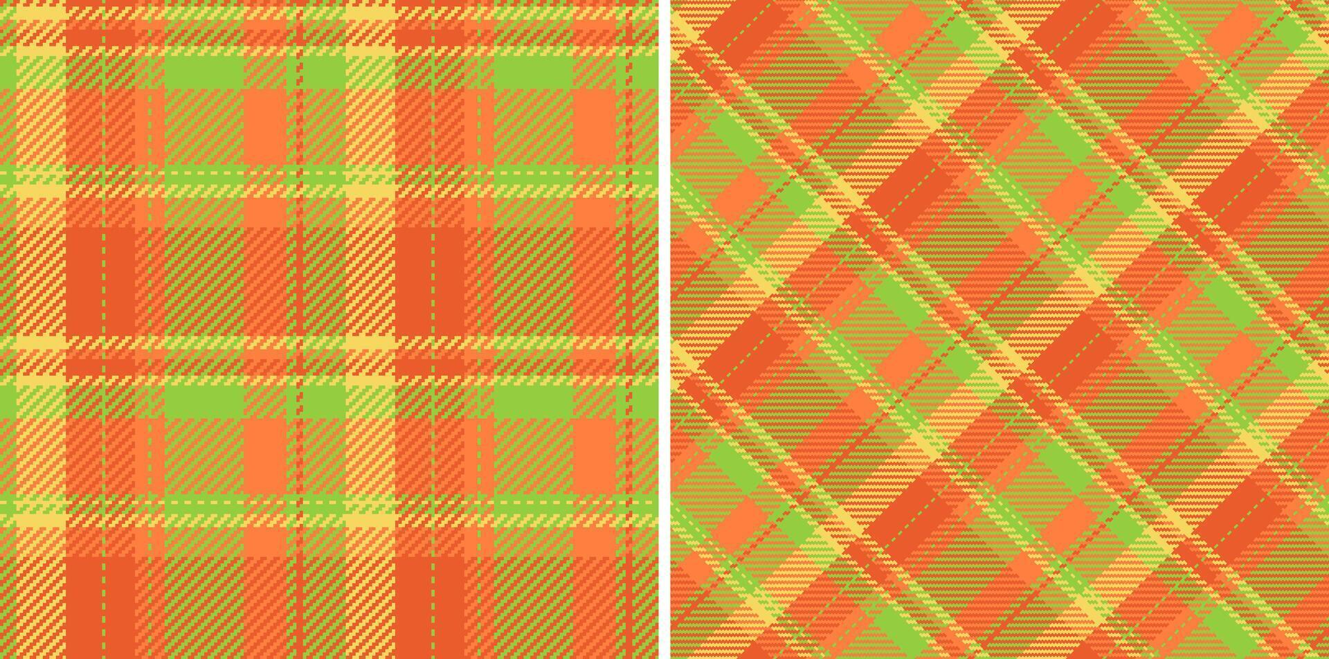 Vibrant autumnal plaid patterns perfect for textile design, fallthemed projects, or seasonal branding. Two distinct yet complementary styles offer versatile design options. Pro Vector