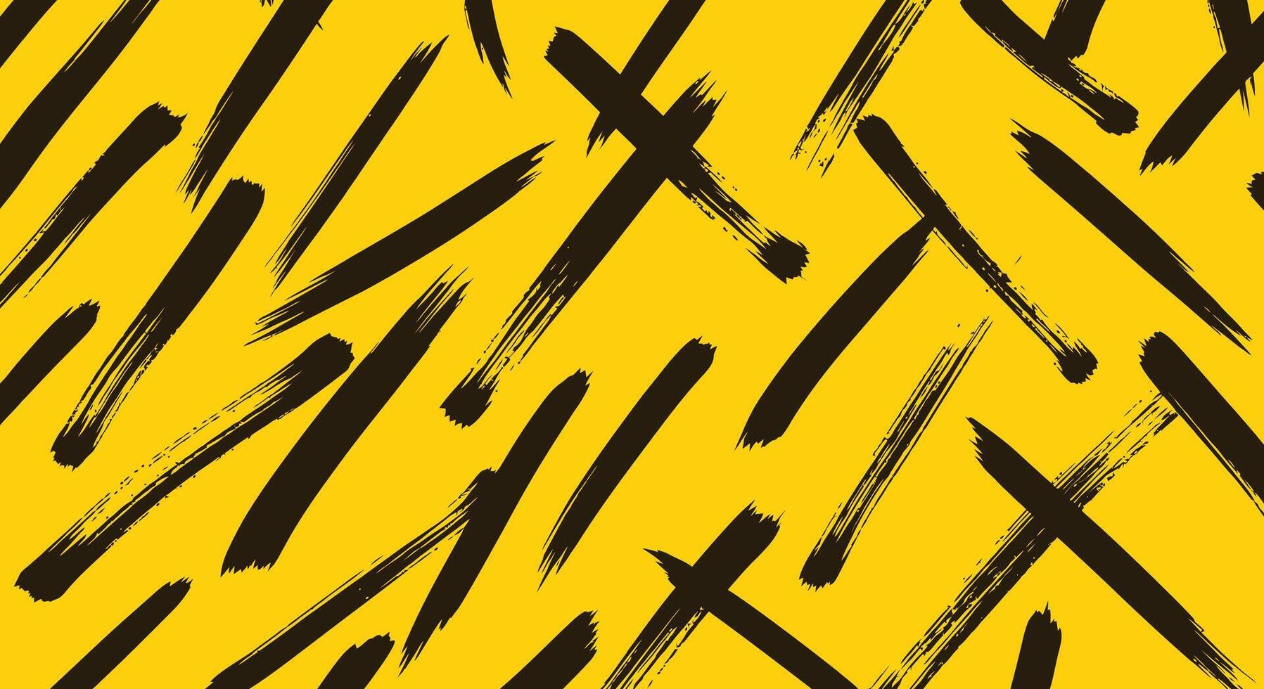 Bold brushstrokes create a dynamic abstract pattern on golden yellow background vector