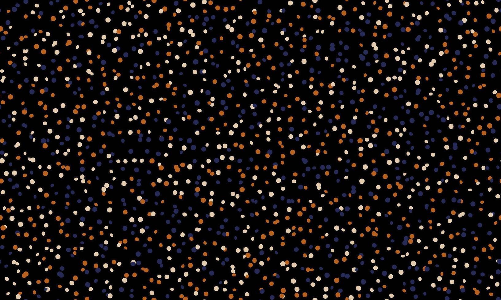 Abstract speckled pattern. Elegant and versatile design featuring tiny dots in cream, orange, and blue on a black background. Perfect for website backgrounds, textile prints, or festive designs. Pro Vector