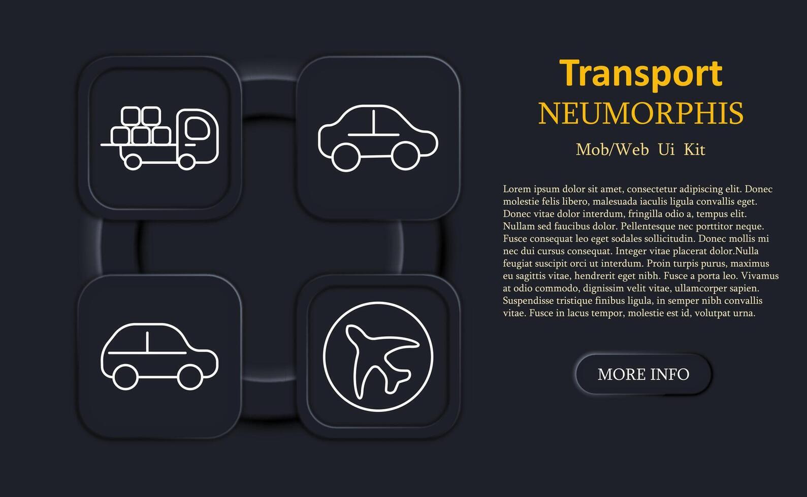 Transport set icon. Truck with cargo boxes, cars, airplane, rounded squares, minimalist linear design, neumorphic digital style, simple outlines, mobile and web user interface. Pro Vector