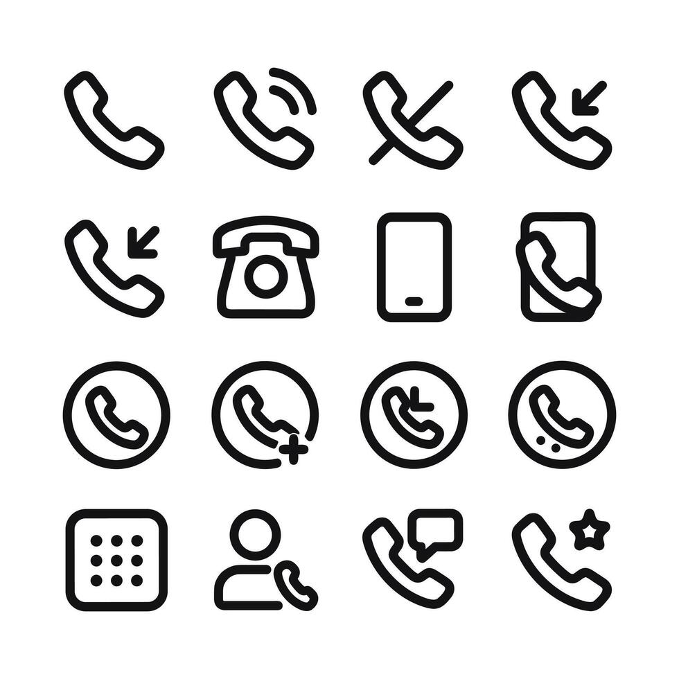 Simple Outline Phone Call Communication Application Interface Line Icon Set Pro Vector