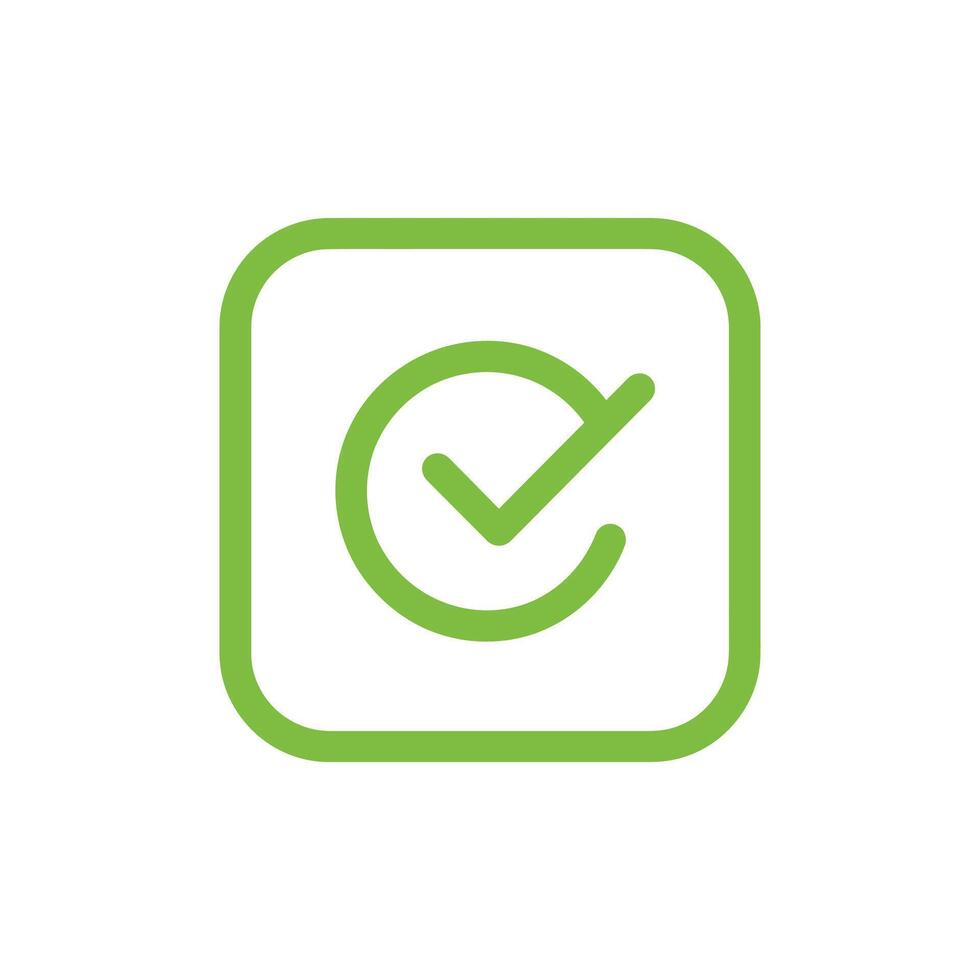 A green check mark inside a rounded square signifies completion on a white background Pro Vector