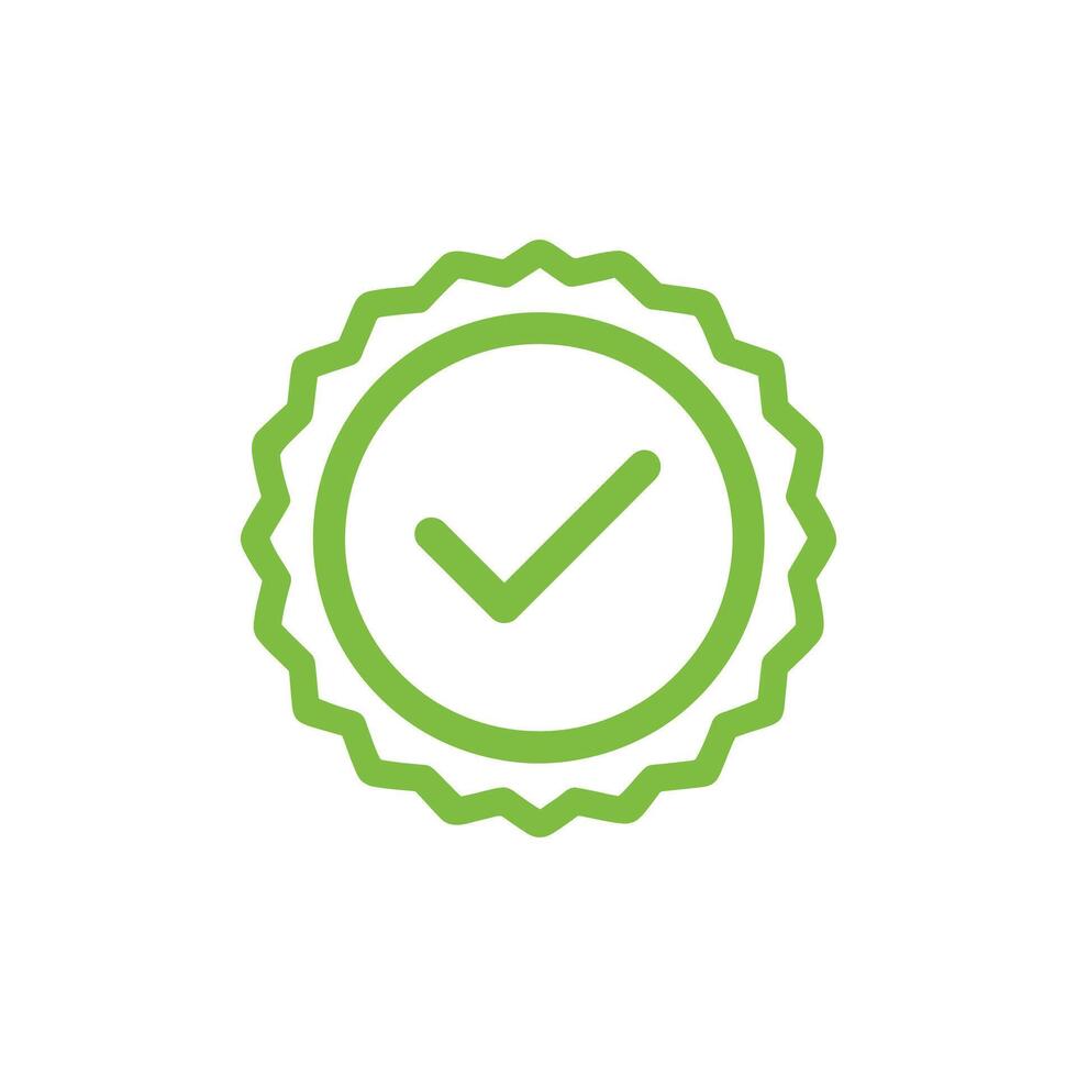 A simple green check mark icon is displayed inside a round badge on white background Pro Vector