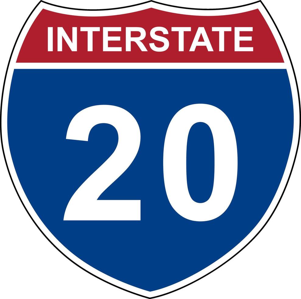 Interstate 20. Interstate highway sign. Road number. Signpost indicating route numbers in the U.S. Interstate Highway System. Even numbers run west to east. Odd numbers run north to south. Pro Vector