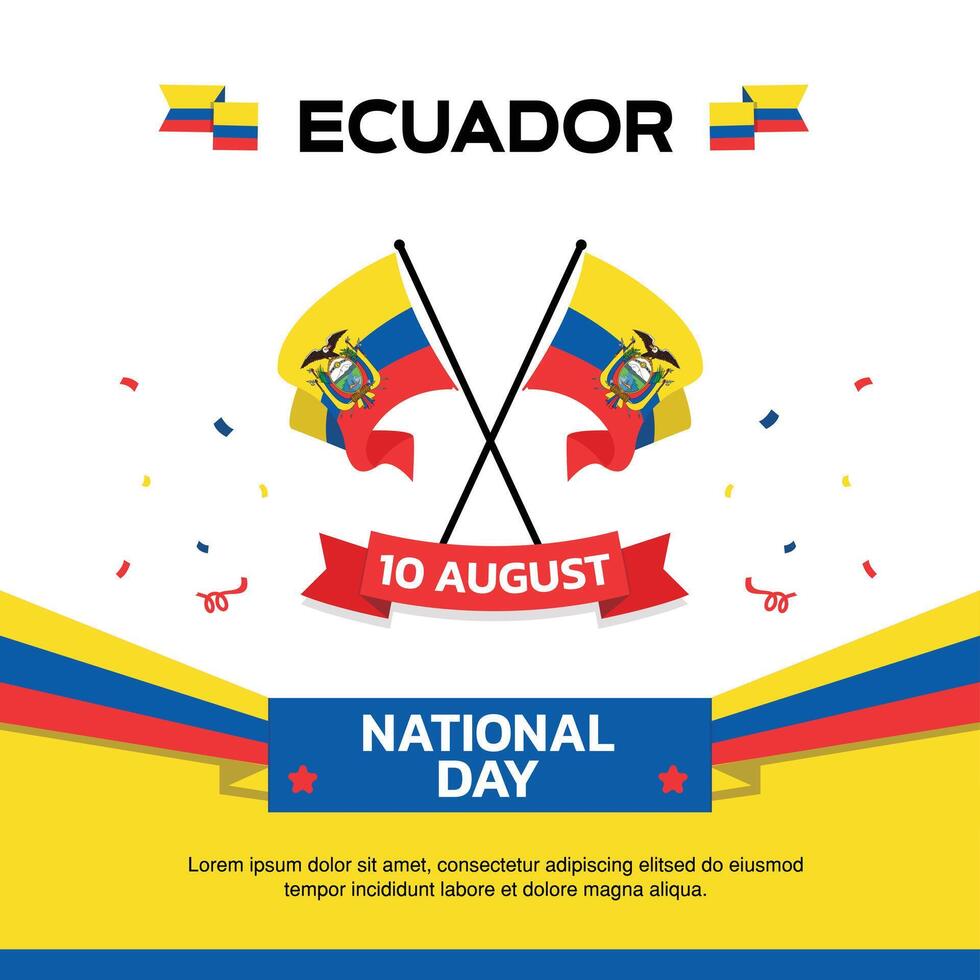 ecuador Independence Day design, August 10th design element box template with flag and at the bottom on background, ecuador map and flag Pro Vector