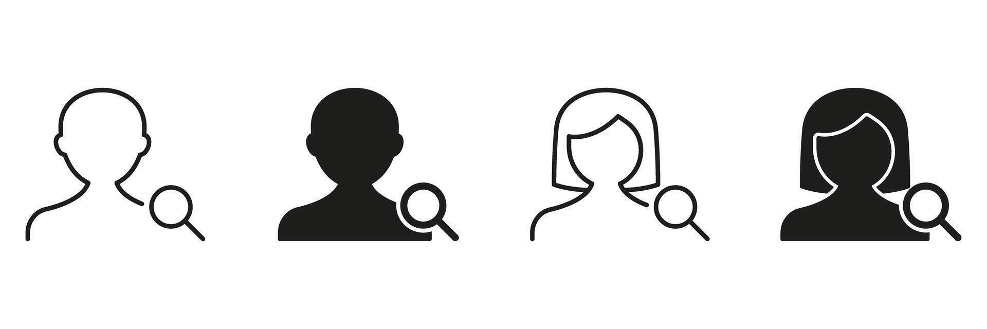 User Profile Search Icon Set. Identity Verification And User Analysis Outline And Silhouette Symbol Collection. Personal Information And Online Presence Exploration. Isolated Illustration Pro Vector