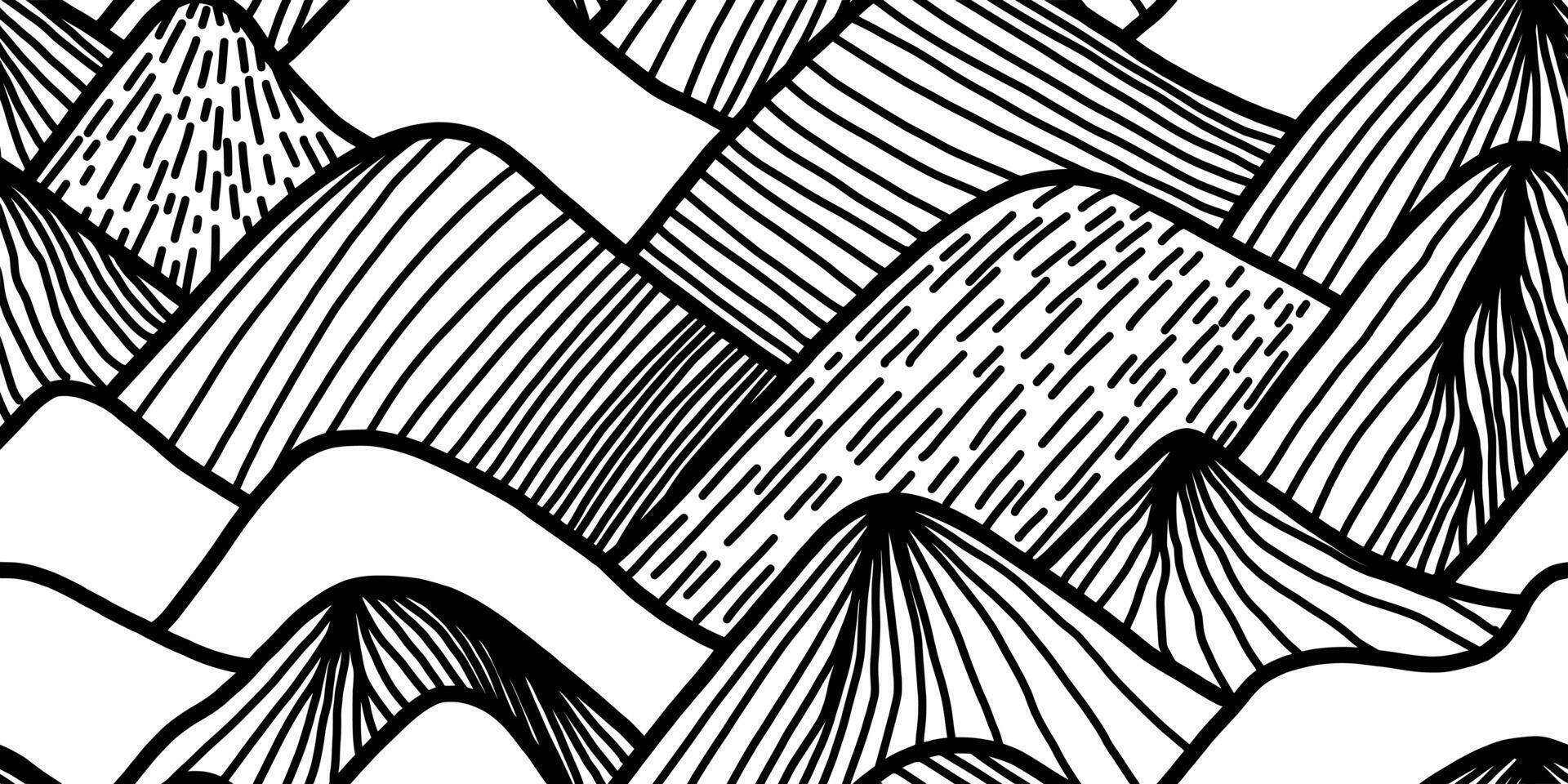 Hand drawn mountain seamless pattern. Japanese background with line wave pattern. Landscape pattern on white background.. Pro Vector