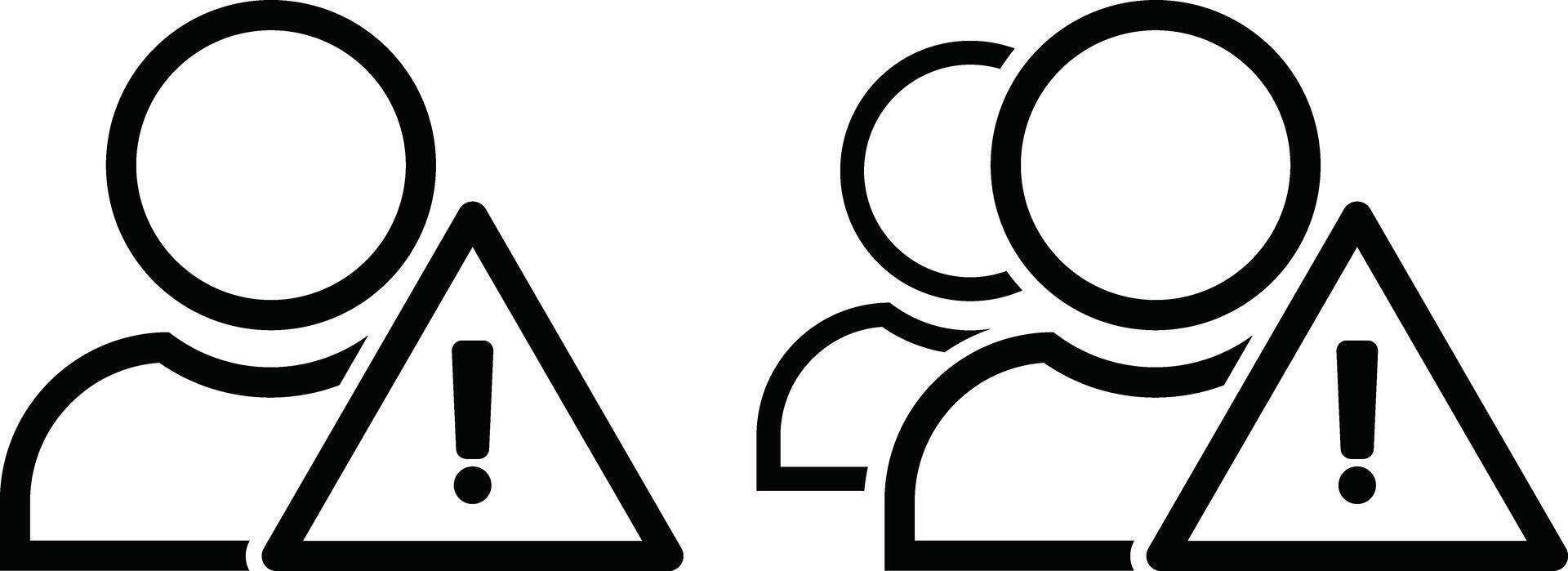 Account warning error icon. Group important notice. isolated on white background. black design with warning triangle. illustration Pro Vector